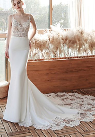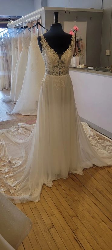 We offer orderable bridal gowns in sizes 00 to 40. Our gowns are all current styles. Best of all, our gowns can be customized to make them perfect for you. Gowns starting at $399.